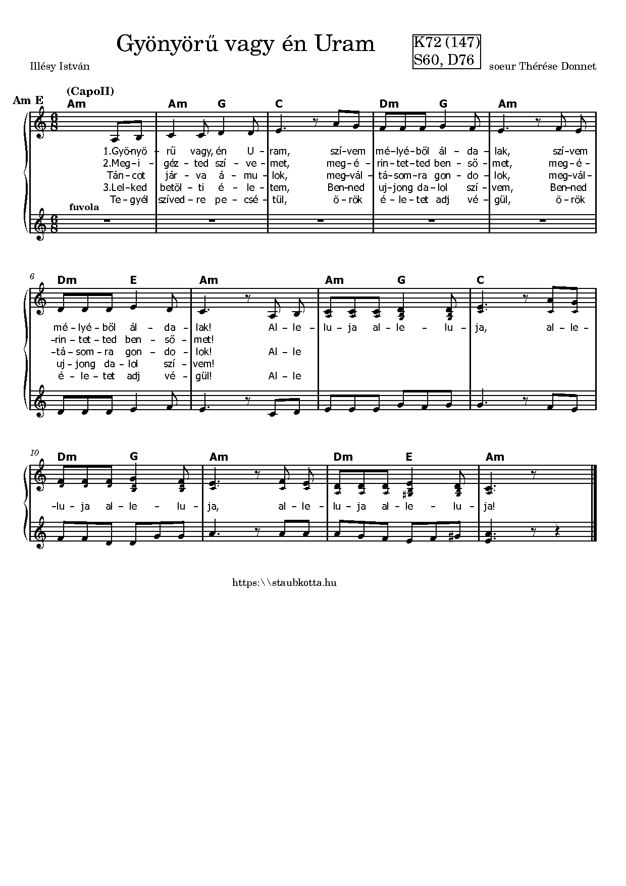 | Alleluja Gyönyörű vagy én Uram Am(Hm) |  |  | |
